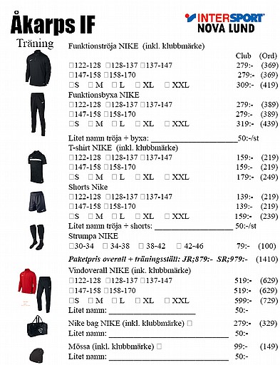 För de som står i begrepp att införskaffa nya kläder för träning, individuellt eller som lag finns en del nytt att spana in under vårt profilsortiment. Här finns även instruktioner kring beställningsförfarande.