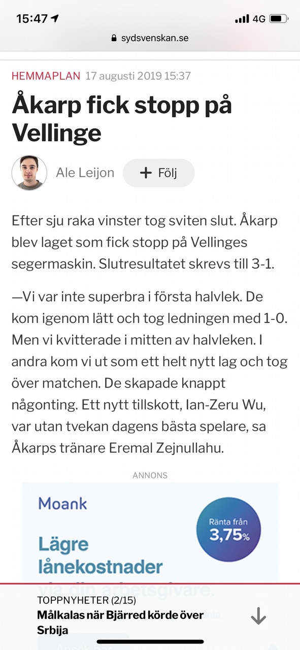 Åkarps IF - Vellinge IF 3-1!